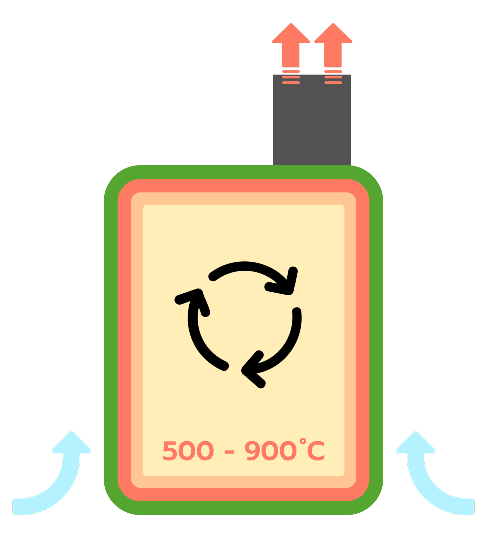 ความร้อนจะถูกเก็บสะสมอยู่ภายในห้องเผาไหม้ที่อุณหภูมิ 500-900 องศาเซลเซียส